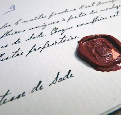 For the perfume our nose was inspired of letters of the Marquis de Sade in which he evokes scents which bewitched the evenings organized in his château of Lacoste: leather flower, black musk and wooden bark. The fragrance spreads and submerges you in a sweet, warm and powerful atmosphere. The passion eventually is right.